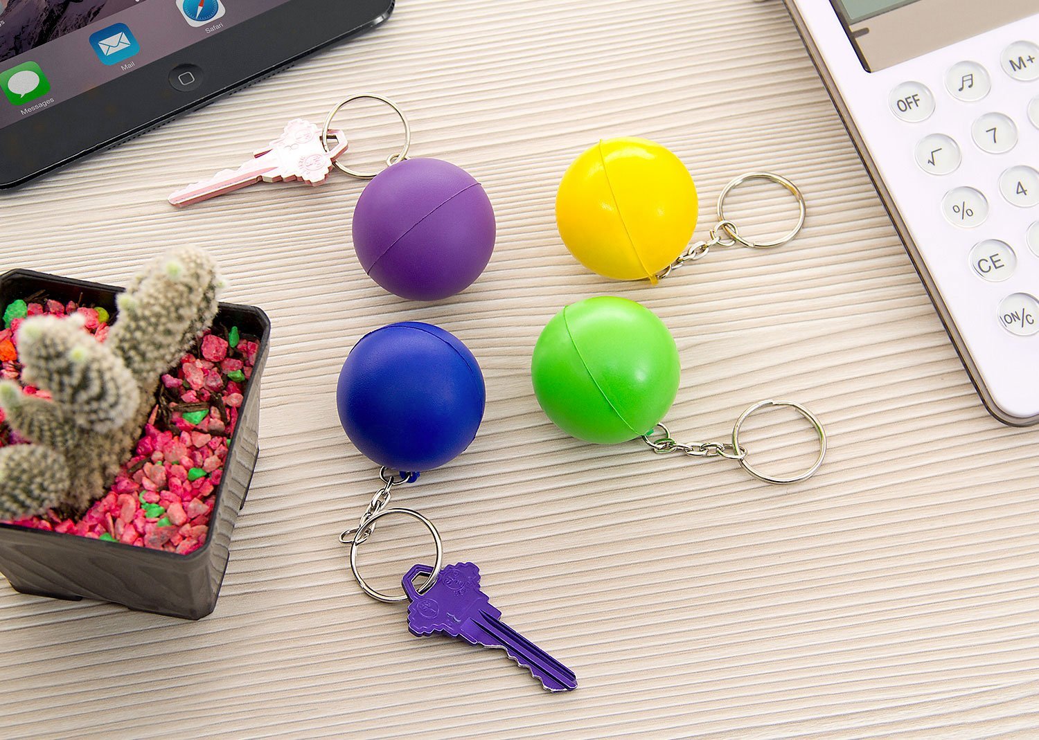 Llavero desestresante en forma de bola.