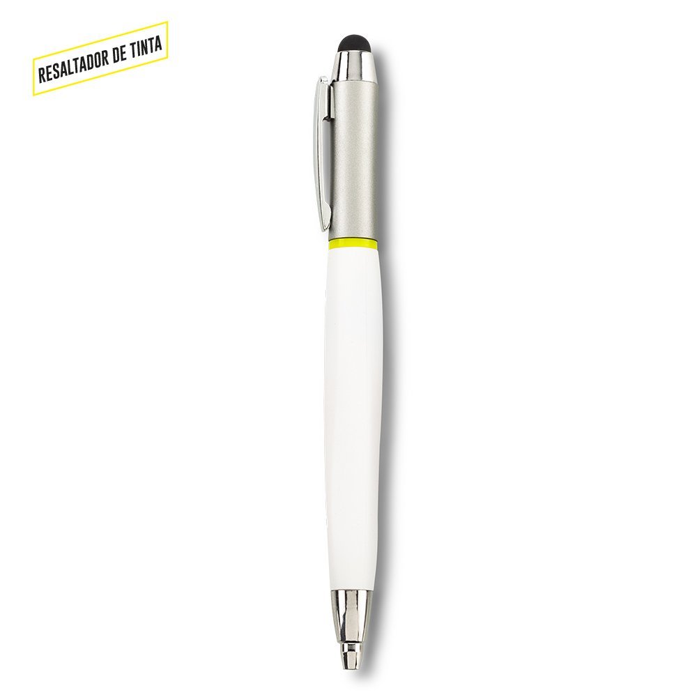 Bolígrafo plástico con stylus y resaltador de tinta.