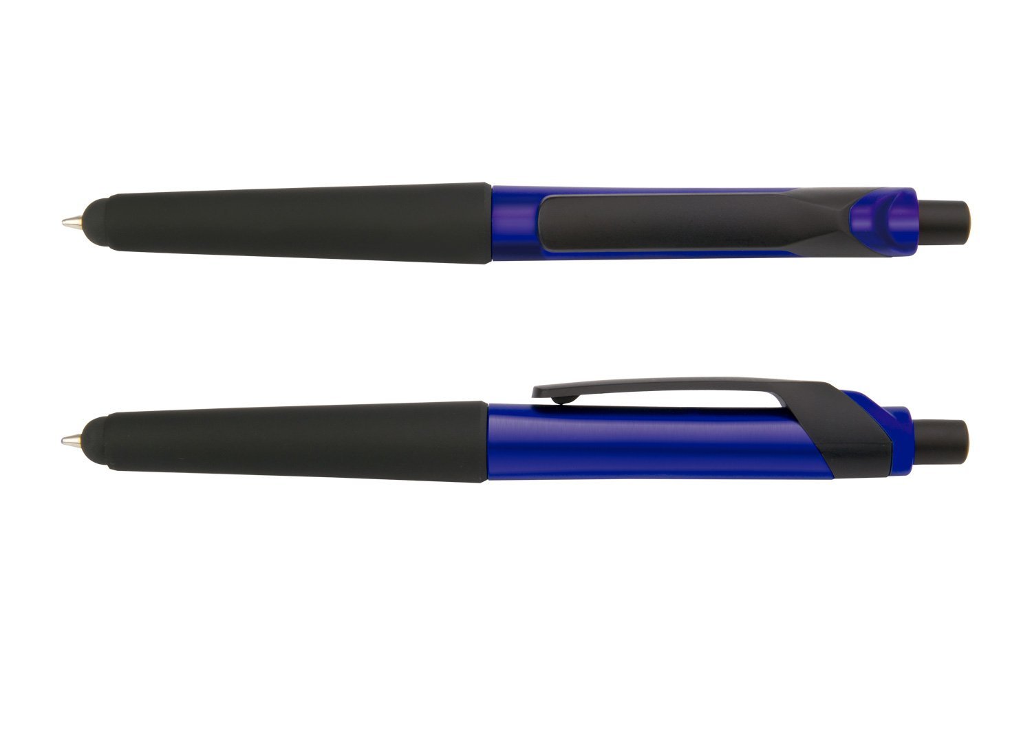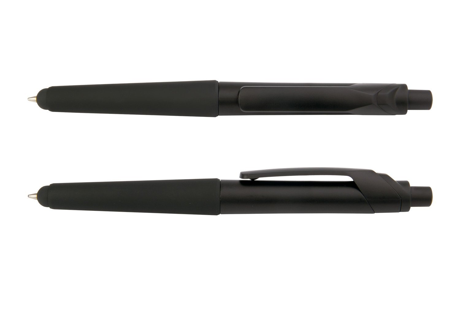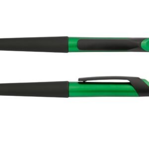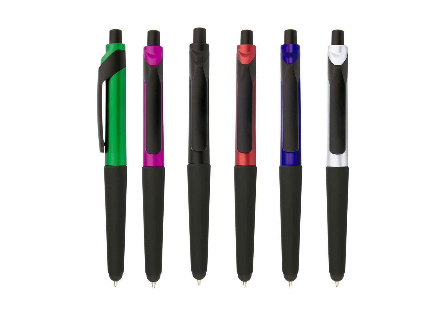 Bolígrafo plástico con sistema de apertura retráctil y Touch para dispositivos con pantallas táctiles. Recubrimiento antideslizante en la punta.