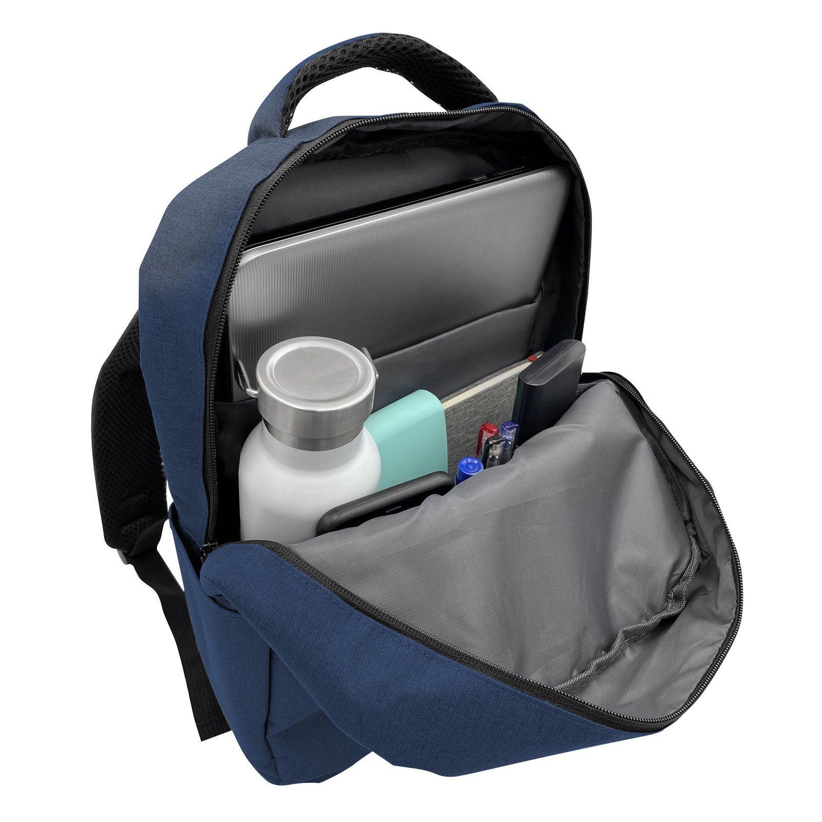 29 x 43 x 11 cm. Capacidad 13 litros. Poliester 300D Wulong. Morral portanotebookde hasta 15 pulgadas. Interior con bolsillo acolchado y múltiples compartimentos para accesorios. Bolsillo principal en el frente con cierre y otro bolsillo lateral para trasladar tu botella y mantenerte hidratado. Correas regulables y espalda acolchadas con red. Tiradores de cierres metálicos.