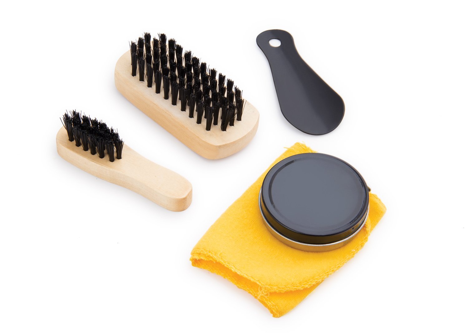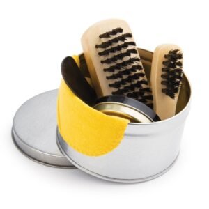 & Free ShippingSet de limpieza para zapatos en caja metálica. Incluye: Paño, betún, 2 cepillos y calzador.