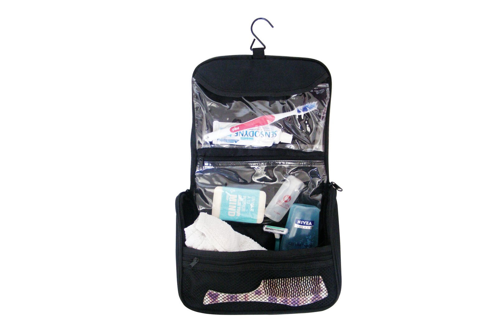 & Free Shipping25,5 x 19 x 8 cm Colgante. Con manija para transportar. Cierre de apertura completa. 2 compartimentos internos plásticos transparentes. 2 bolsillos internos de red. 1 compartimento interno inferior.