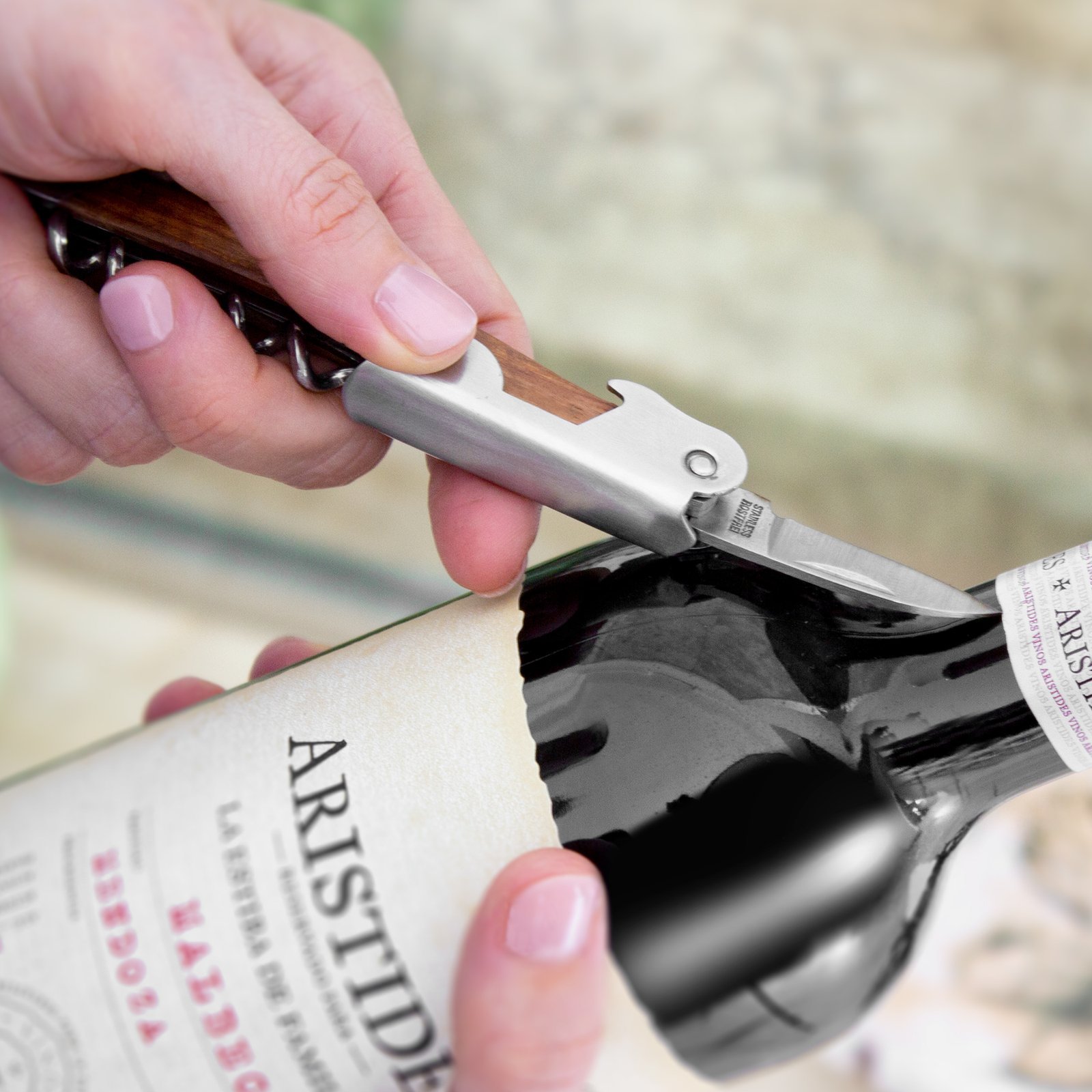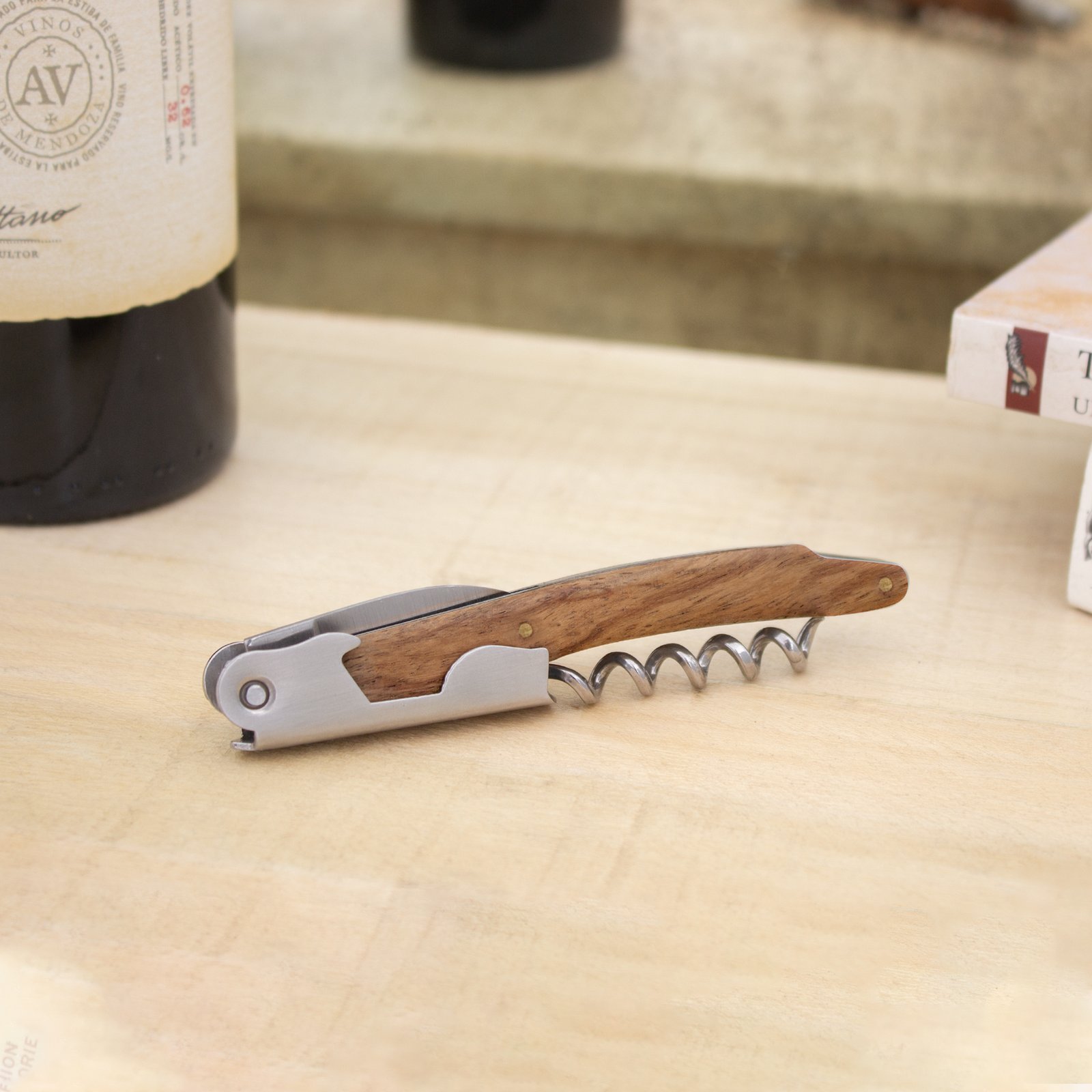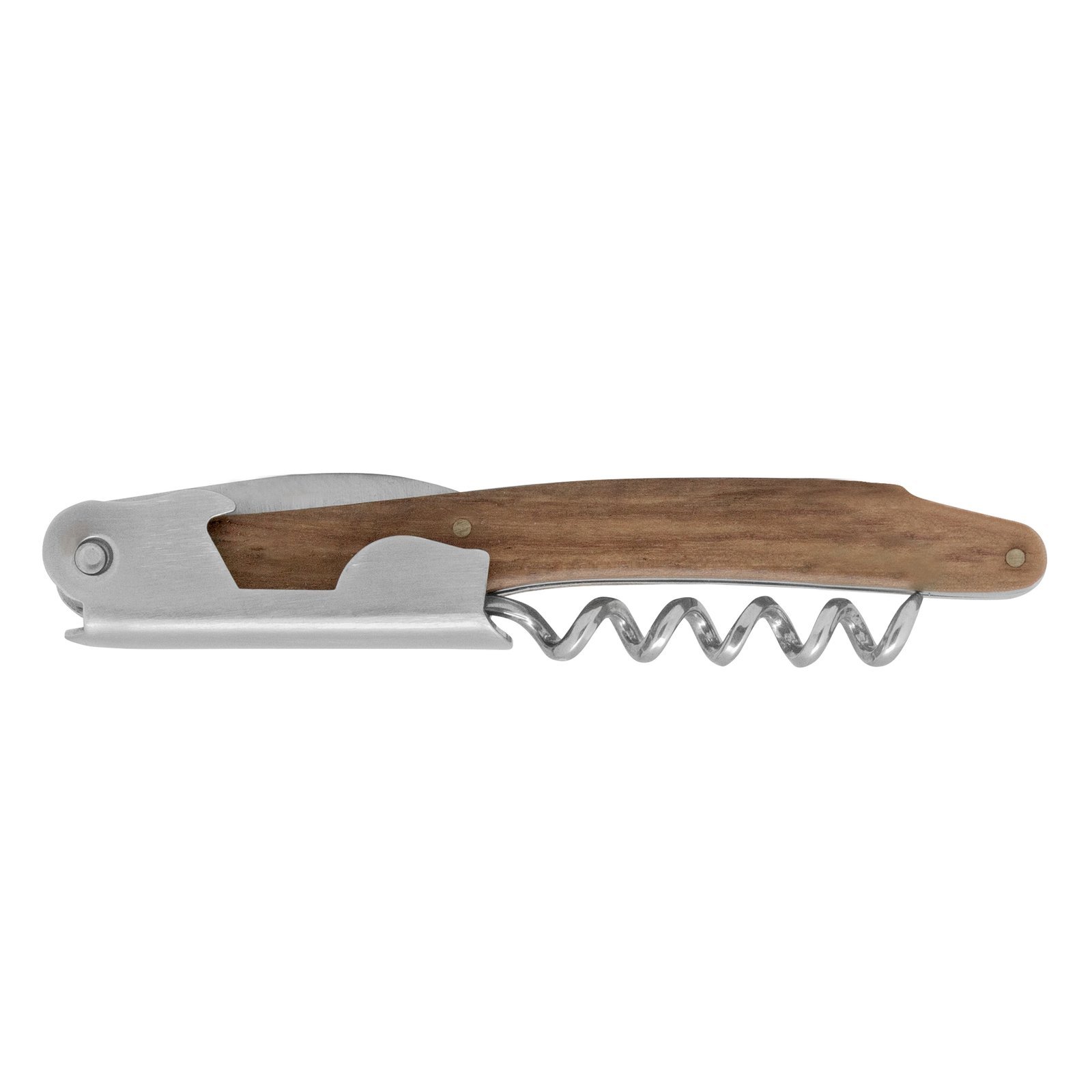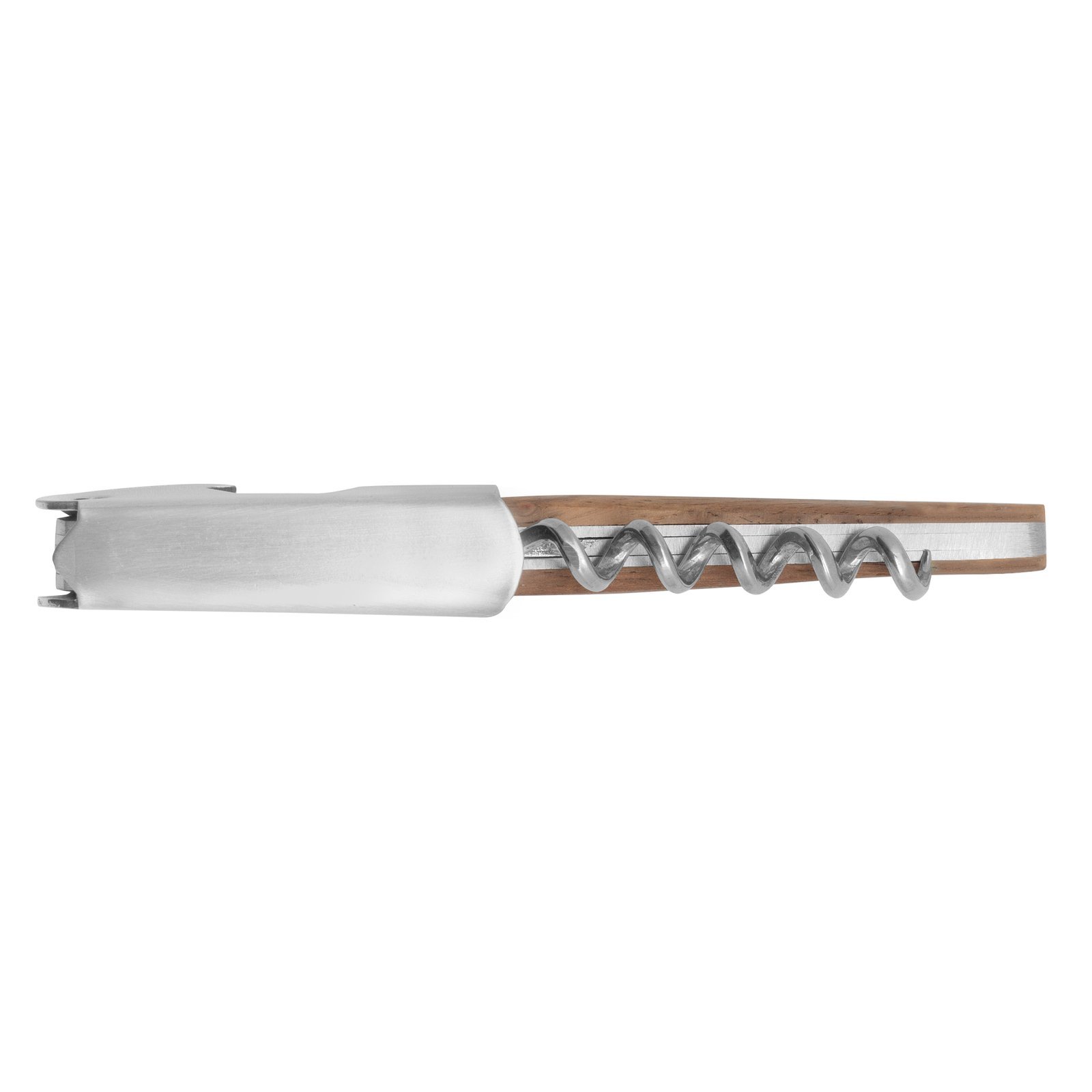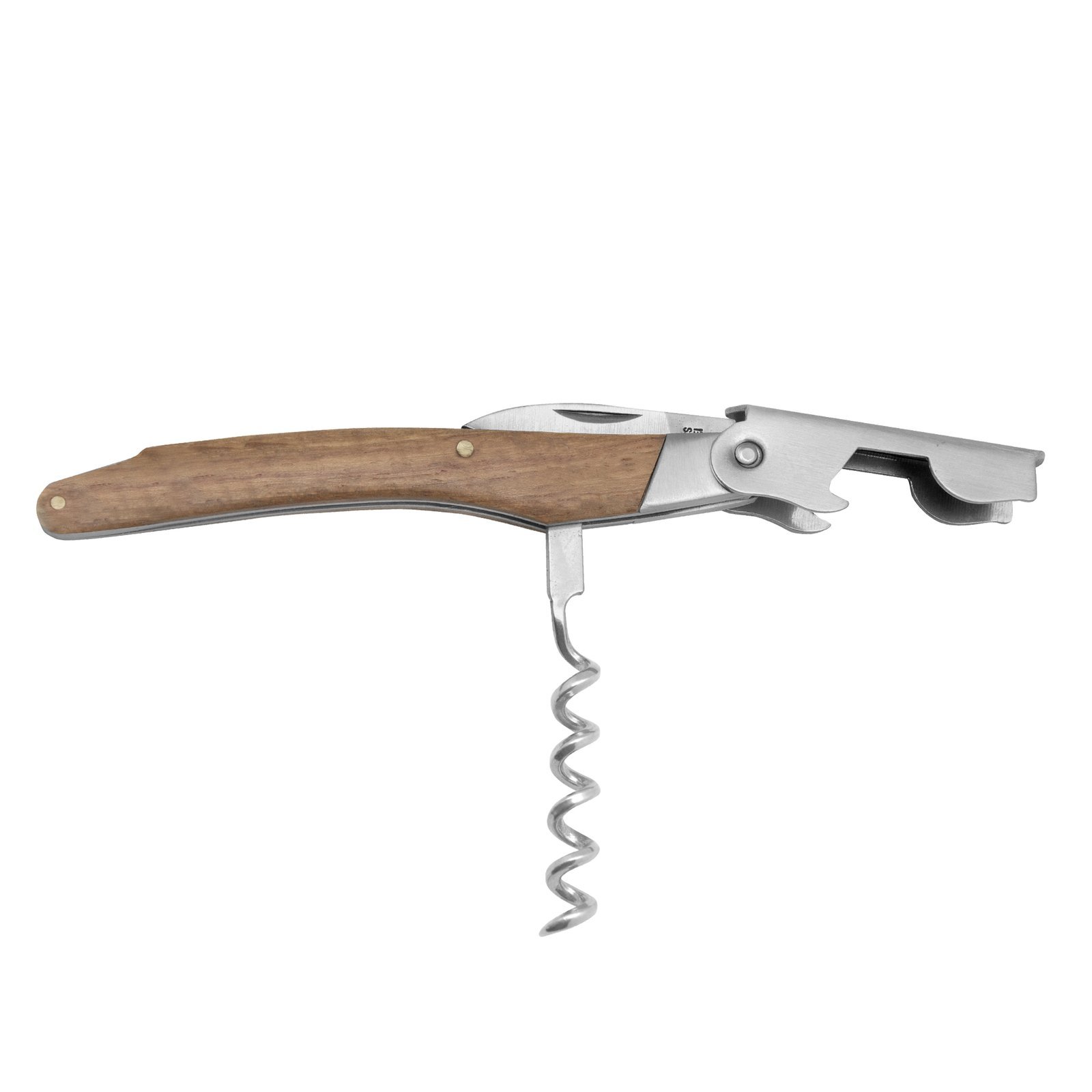 & Free Shipping11,6 cm. Acero inoxidable. Peso: 68g. Abridor de botellas de vino en acero inoxidable con mango de madera en color natural. Accesorios incorporados: sacacorchos, navaja y destapador. Presentación en caja de regalo.
