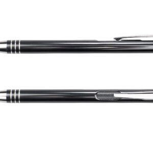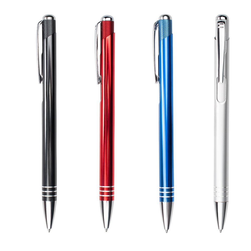 Bolígrafo retráctil con cuerpo de aluminio brillante, complementado con clip y detalles metálicos que aportan un acabado elegante y profesional. Su mecanismo retráctil ofrece practicidad y estilo en cada uso, ideal para quienes buscan funcionalidad sin renunciar al diseño.