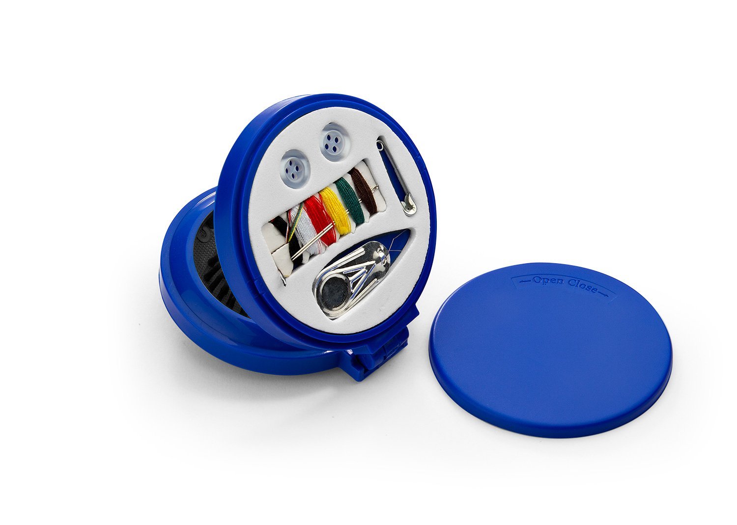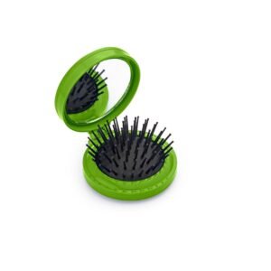 Espejo con cepillo redondo para cabello. Incluye un costurero con 6 hilos de colores, 2 agujas, gancho nodriza, enhebrador y 2 botones.