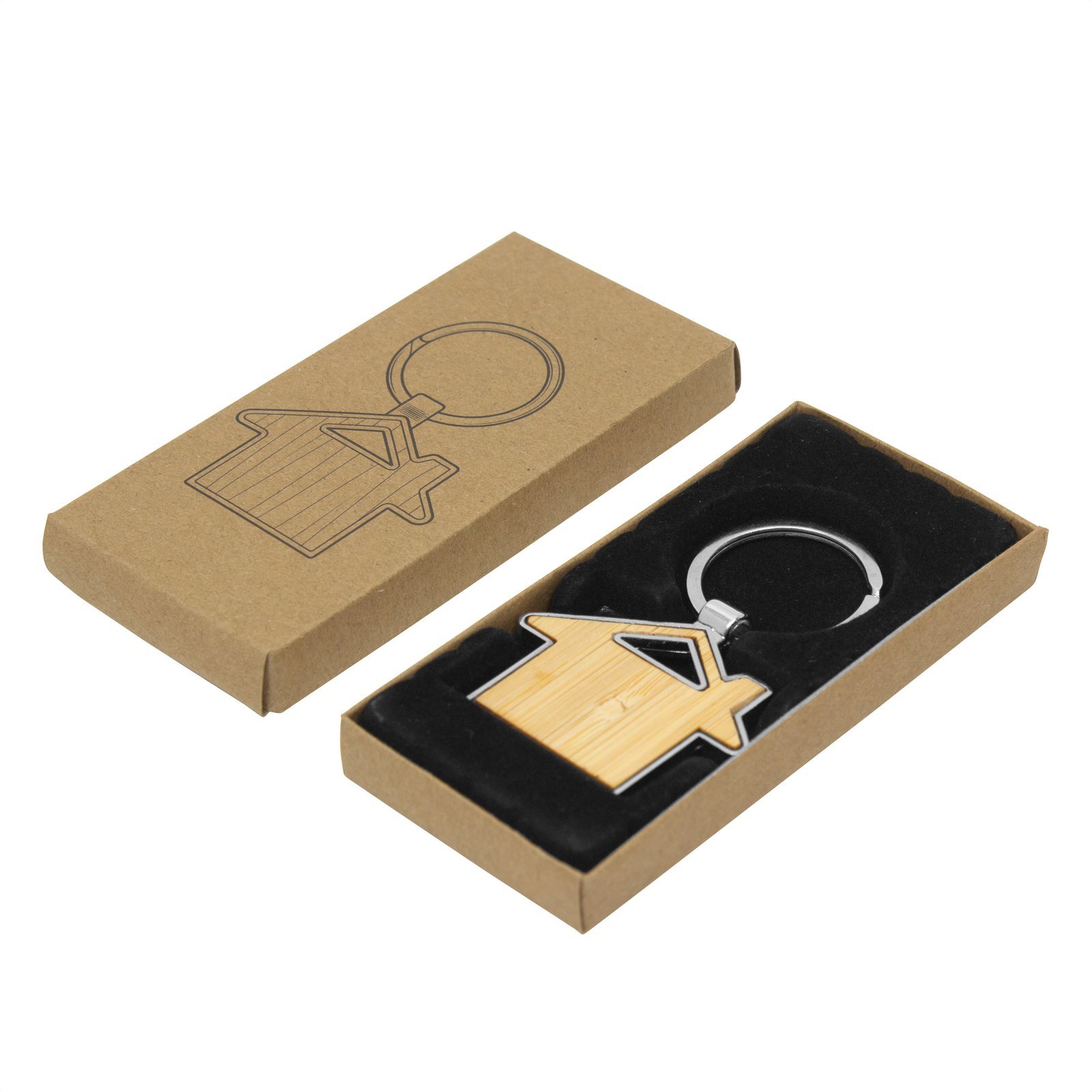& Free ShippingLlavero con forma de casa. Estructura metálica con aleación de zinc con acabado brillante y panel frontal de bambú barnizado.