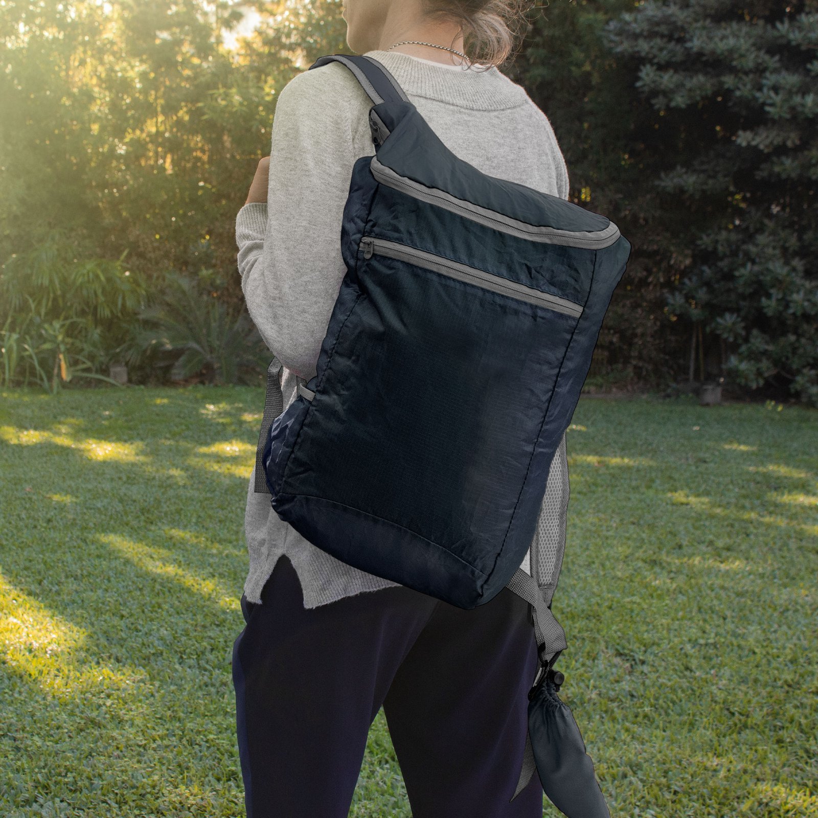 & Free Shipping26 x 43 x 12 cm. (abierta). 13,5 x 18,5 x 7 cm (cerrada). Capacidad 13 litros. Ripstop 210T (Tela ligera y resistente, de alta durabilidad y protección antidesgarro). Morral plegable. Compartimento principal con cierre. Bolsillo lateral elastizado. Bolsillo frontal con cierre horizontal. Cierres metálicos. Correas regulables reforzadas y acolchadas. Se comprime fácilmente en una bolsa pequeña con cierre ajustable.