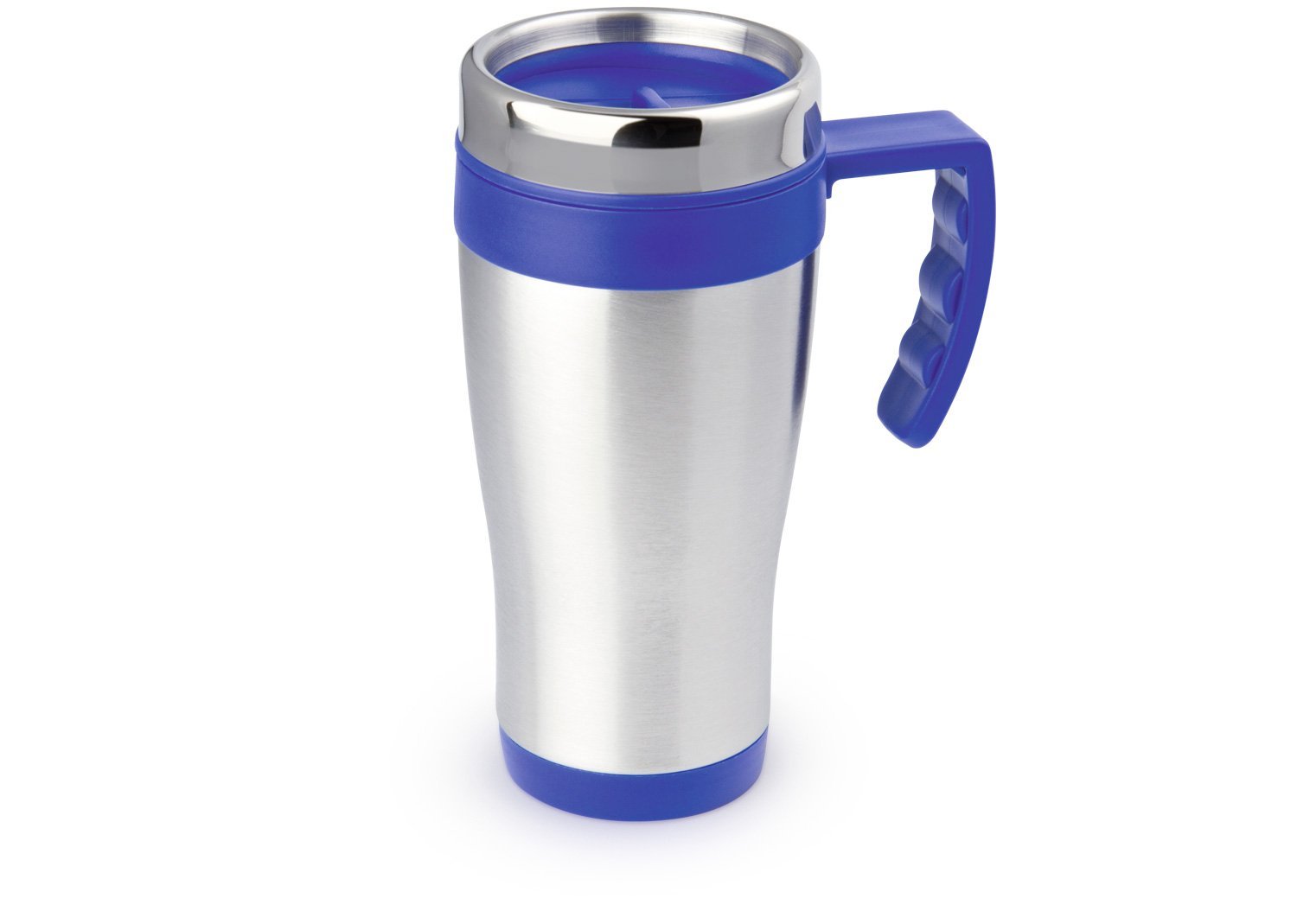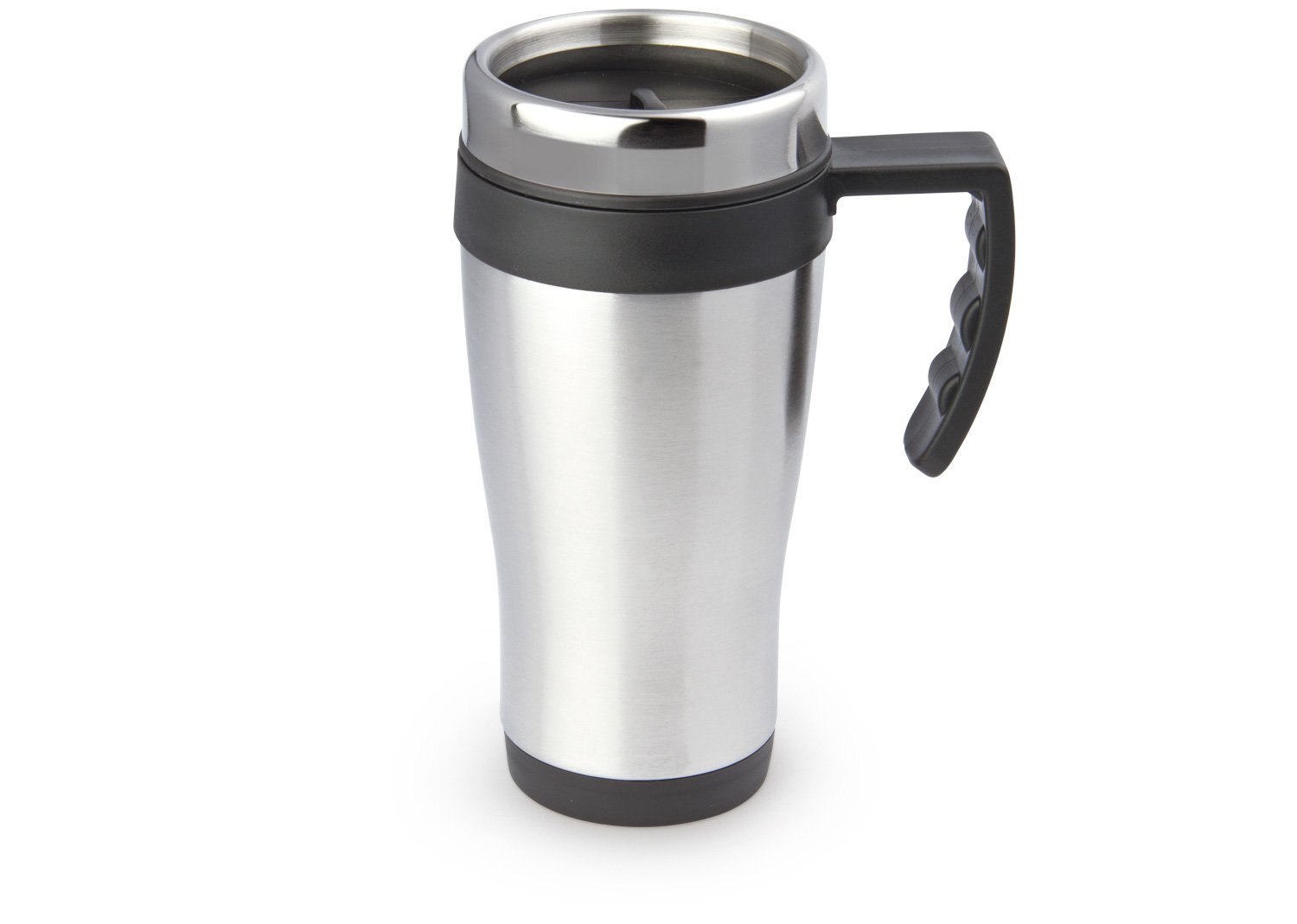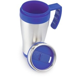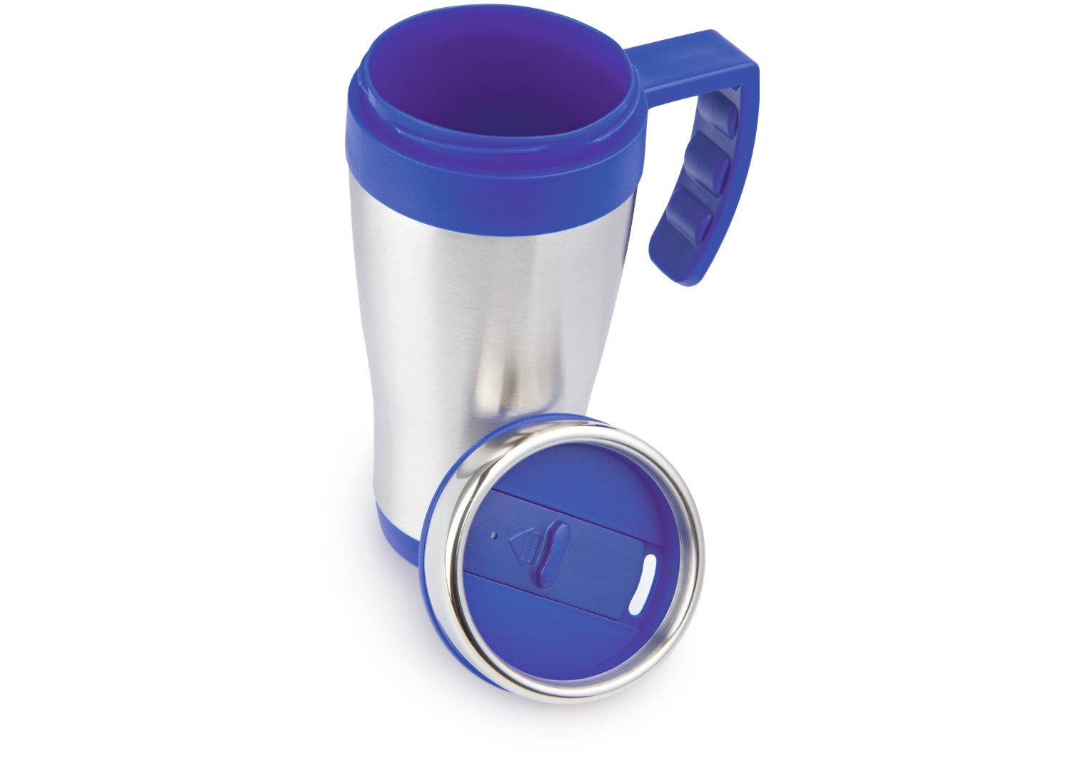 & Free ShippingMug viajero doble pared con recubrimiento interior plástico, que permite la conservación de la temperatura de acuerdo al ambiente. Con agarradera y tapa corrediza para fácil transporte. Capacidad: 450 ml / 15 Oz.