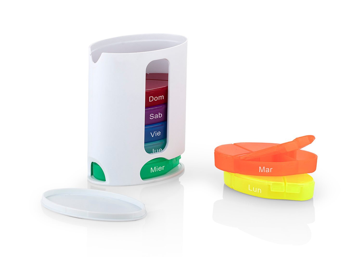 & Free ShippingPastillero semanal de colores con 7 compartimientos asignados para cada día de la semana. Cierre a presión.