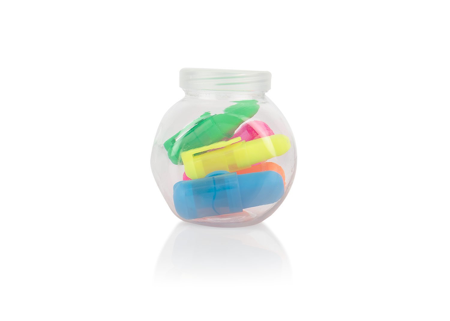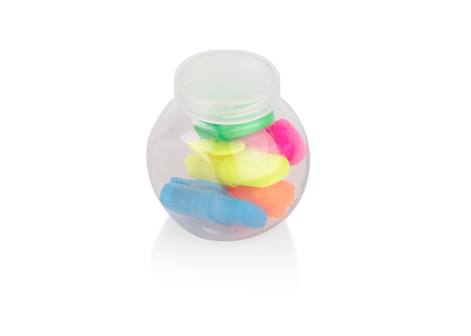 & Free ShippingJuego de 5 resaltadores en estuche traslucido plástico. Colores rosado, naranja, azul, verde y amarillo.