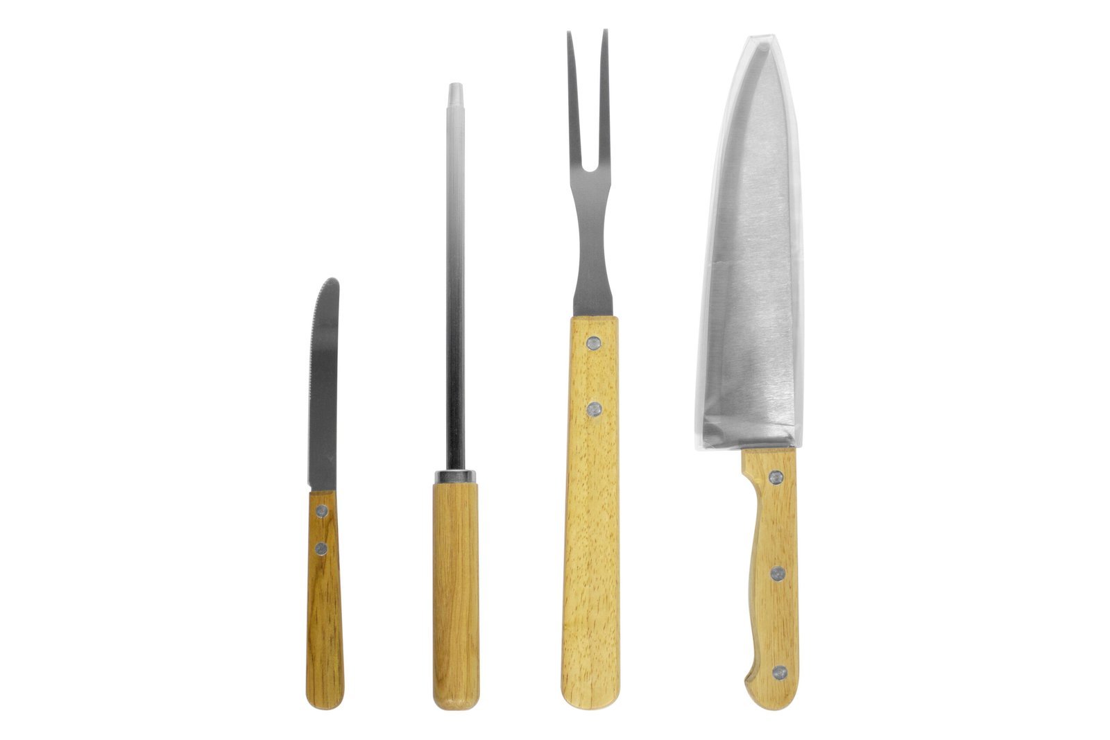 & Free Shipping23 x 35,5 x 4,2 cm. Poliéster 300D, bambú y acero inoxidable. Set de asado de 5 piezas: Tabla de bambú 32,5 x 21,5 x 1,1 cm. Tenedor asador, cuchilla, cuchillo y chaira para afilar, todos con mango de madera barnizados. Presentación en caja de regalo.