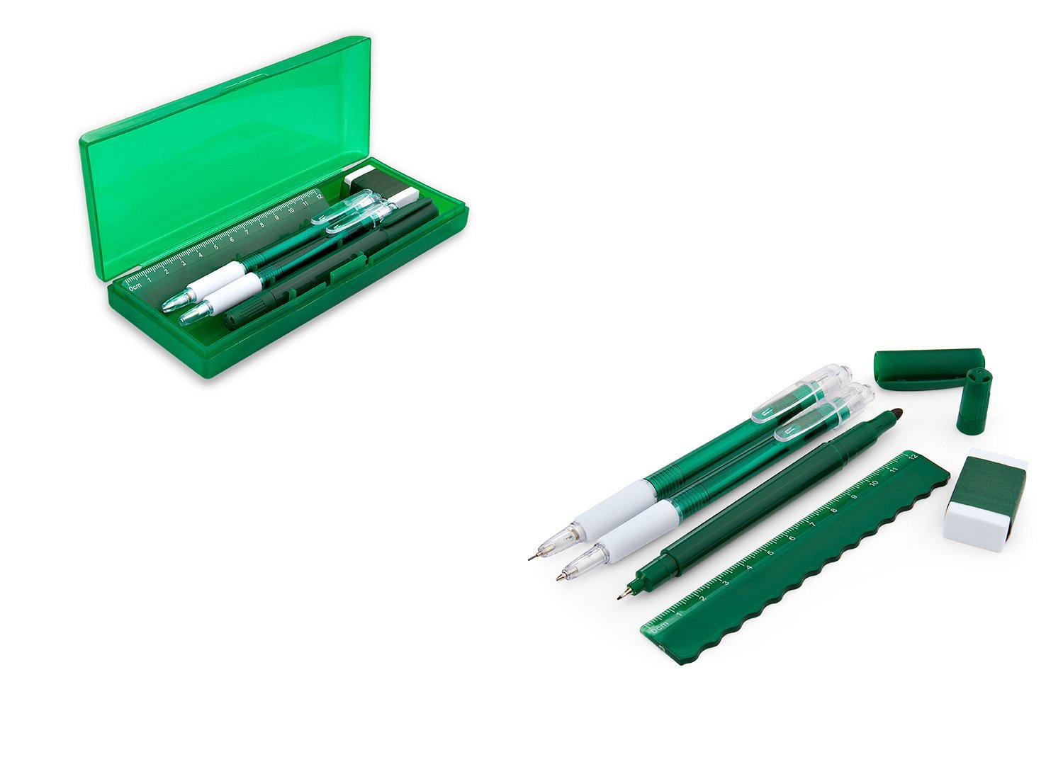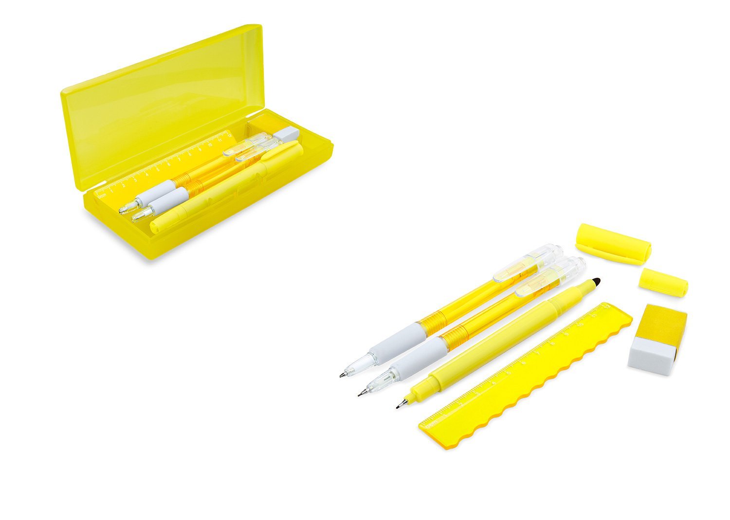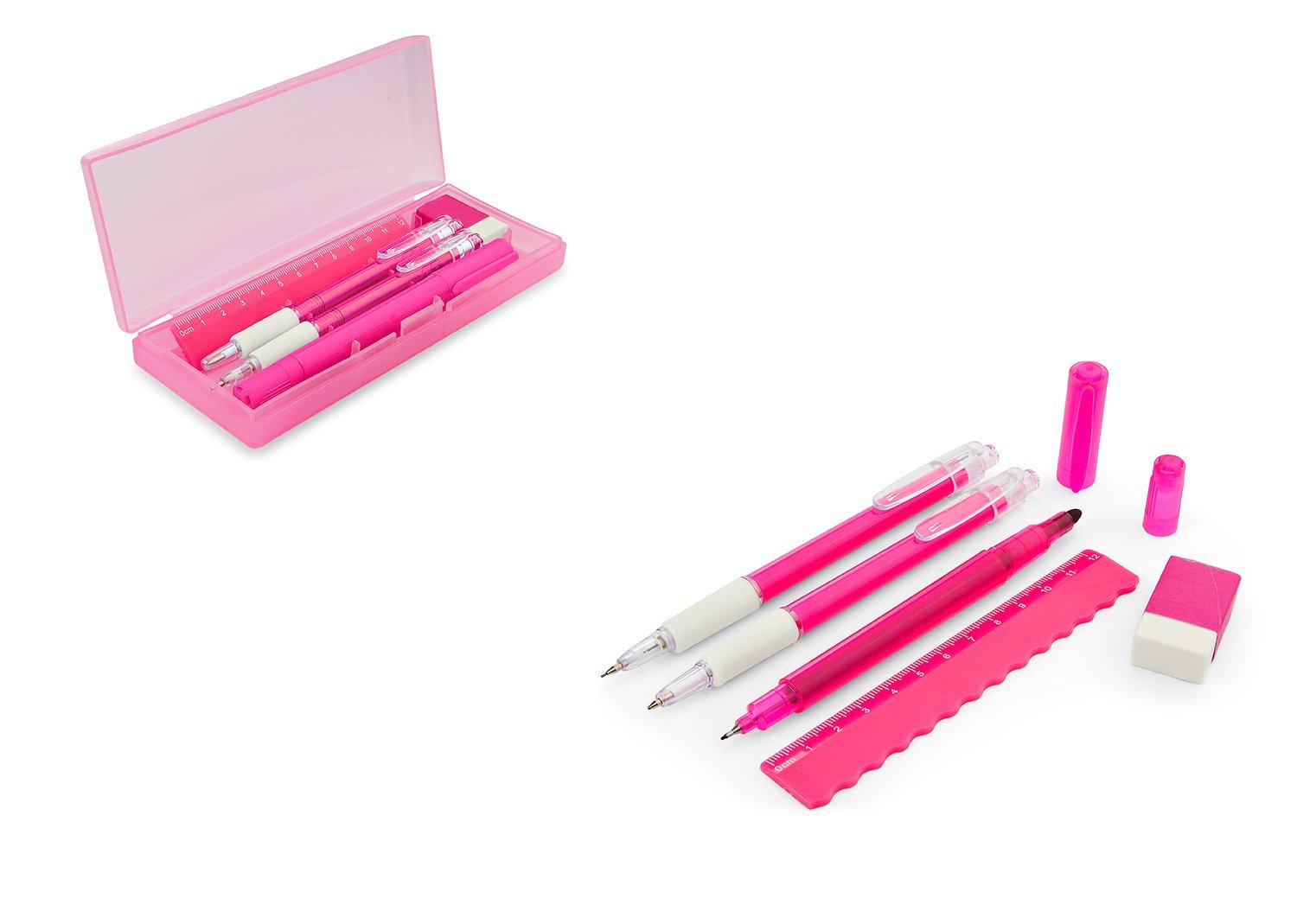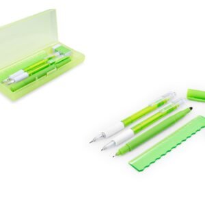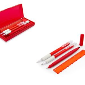& Free ShippingSet de escritorio en estuche plástico, contiene: resaltador, bolígrafo, portaminas, regla y borrador.