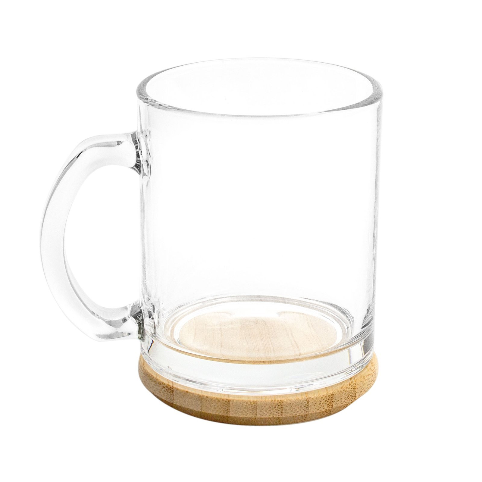Ø 8 cm x 9,7 cm. Capacidad 350 ml. Vidrio + bambú. Taza de vidrio con tapa de Bambú barnizado. Presentación en caja de regalo kraft.