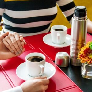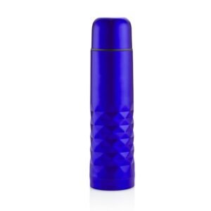 Termo metálico doble pared de aislamiento al vacío que garantiza una excelente capacidad para mantener la temperatura caliente hasta por 12 horas y fría hasta 24 horas, con revestimiento en cobre, acabado metalizado y diseño geométrico en la parte inferior. Capacidad 500 ml / 17 Oz.