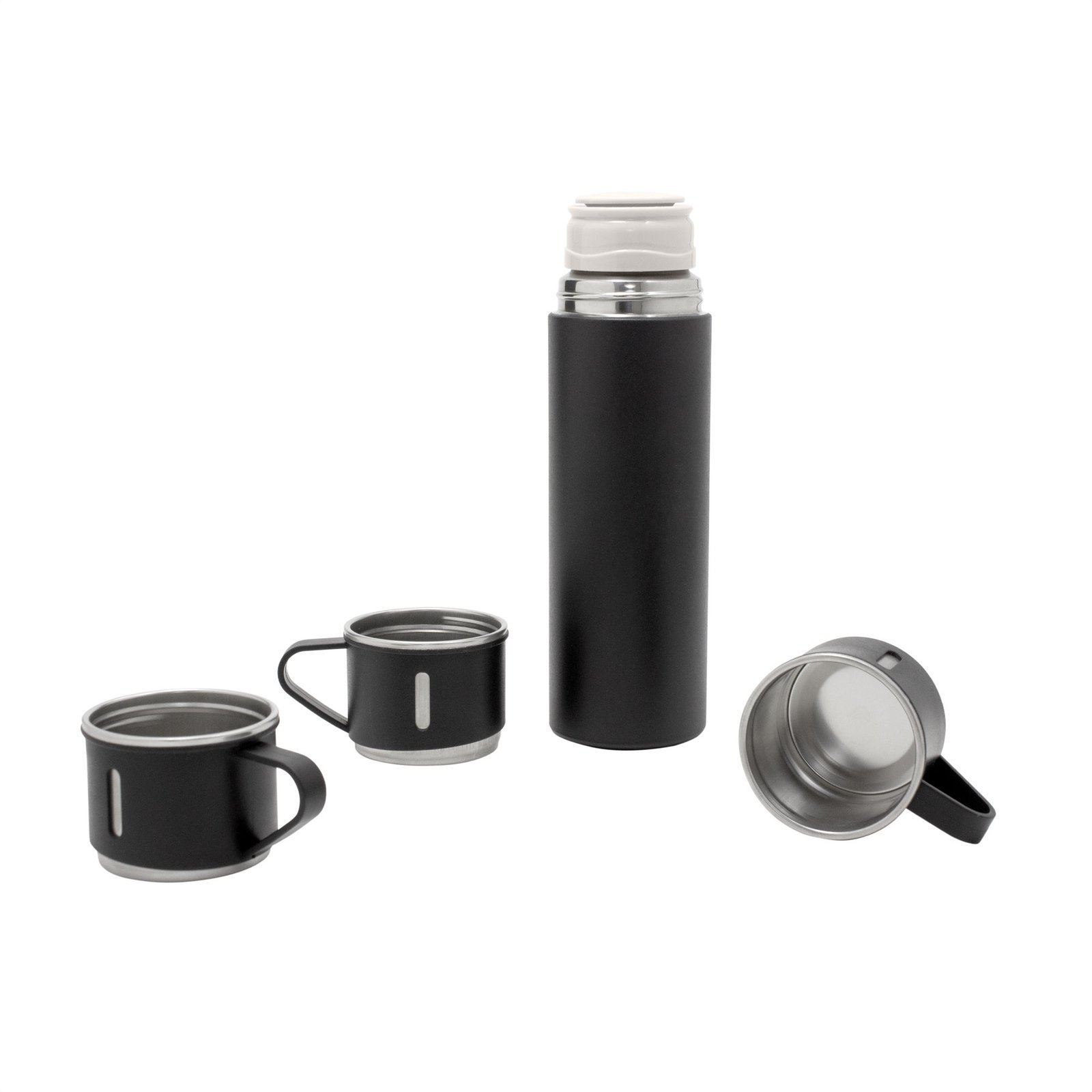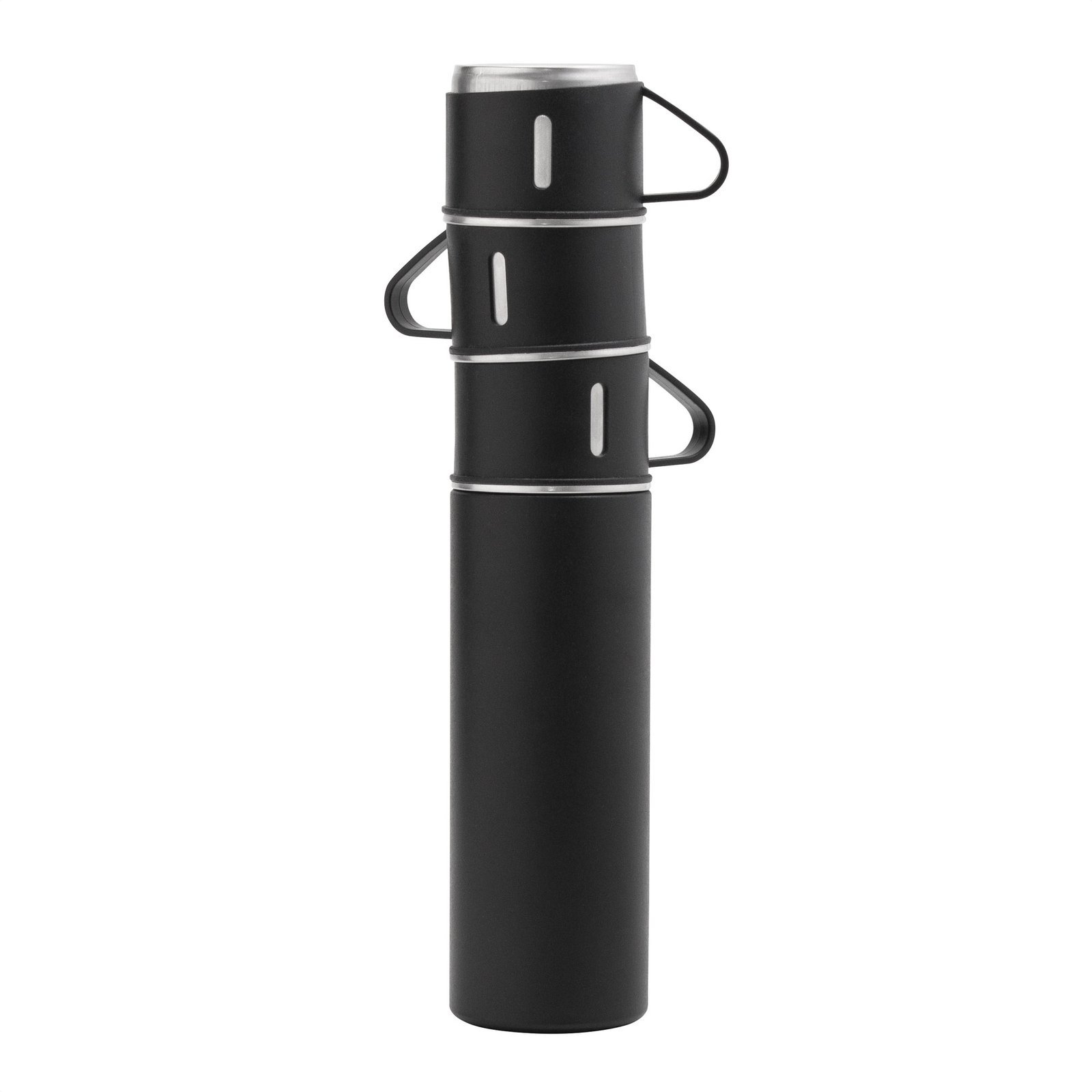 & Free ShippingØ 6,5 cm x 23,5 cm. Acero inoxidable y Polipropileno. Capacidad 500 ml. Set de termo y tres tazas. Termo con doble pared sellado al vacío. Tecnología Vacuum. Acero inoxidable 304 interior / 201 exterior. Tapa y tazas Ø 6,5 cm x 5 cm. Capacidad 120 ml. Acero inoxidable 304 interior / PP exterior. Pintura acabado mate. Mantiene por más de 12 hs la temperatura de las bebidas calientes y 24 hs de las bebidas frías. Presentación en caja de regalo Kraft.
