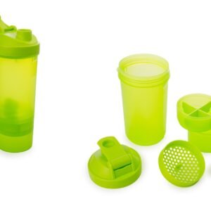 & Free ShippingBotella con Shaker, colador, vaso y pastillero con compartimientos removibles. En PP, Libre de BPA, ftalatos u otras sustancias nocivas. No retiene ni transmite sabores u olores. Capacidad 500ml / 17 oz .